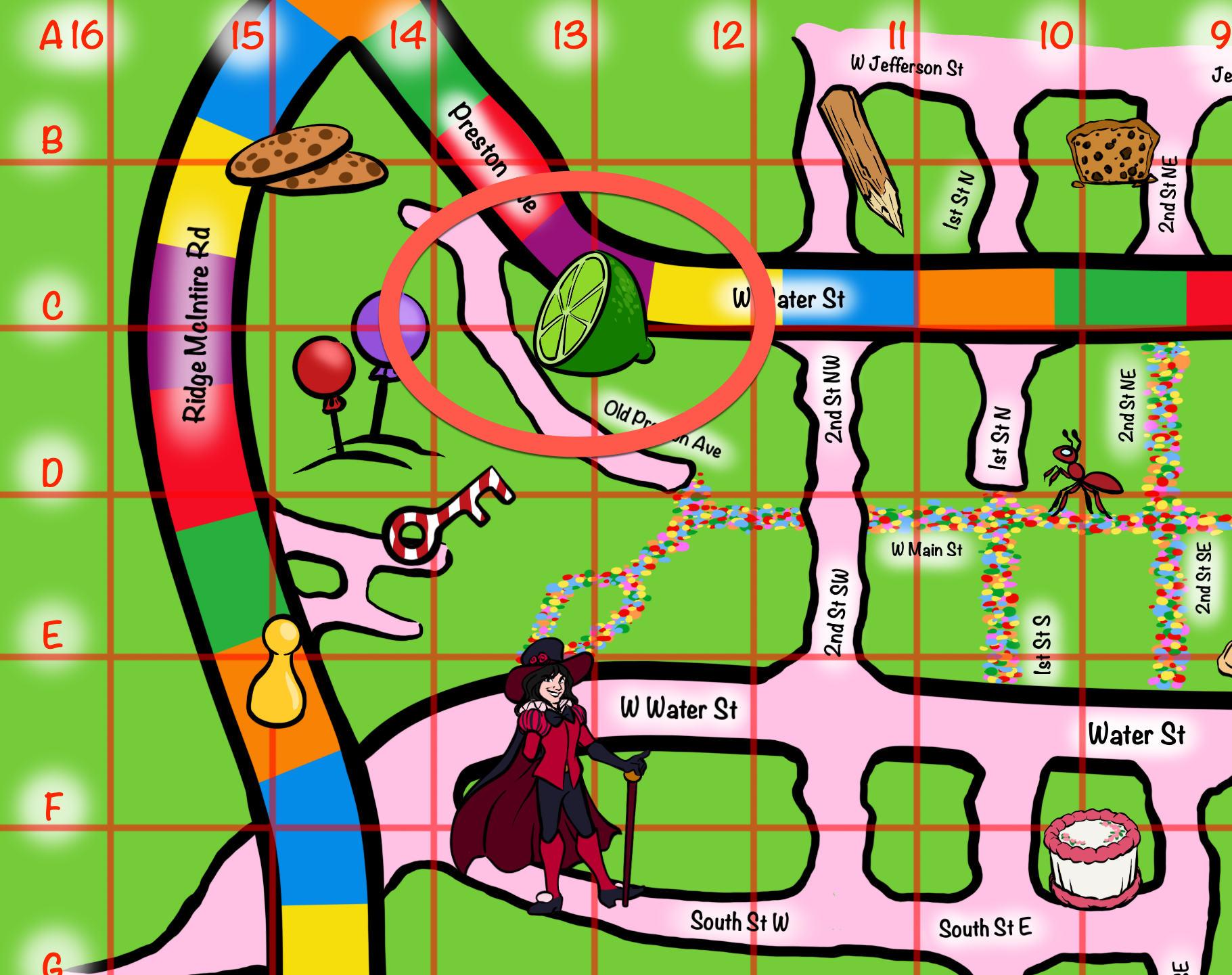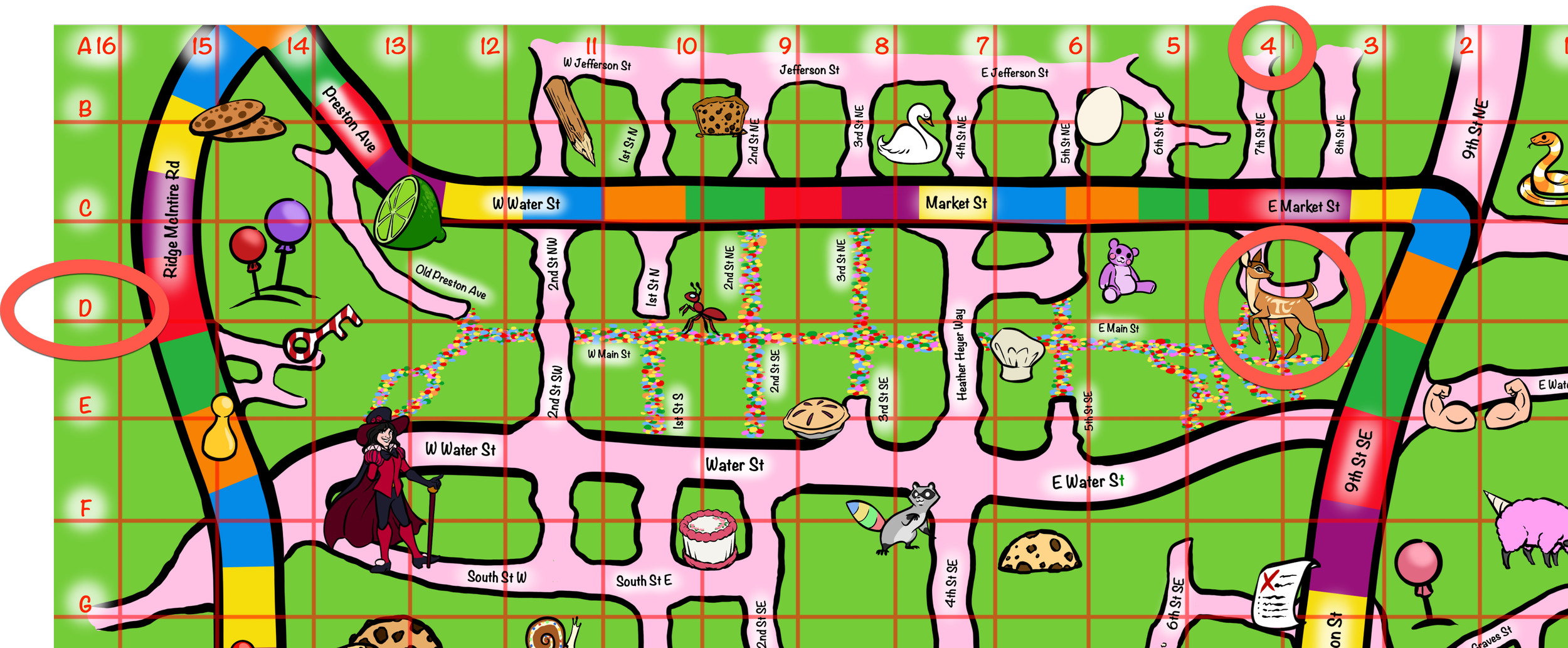 Hunters should go to this location on the map. At the location, teams saw an A-frame chalk board that Advertised “Pie Dough, Lo-cal.” Sticking with the homophone theme, hunters likely noticed that there was a doe with a pi marking.
