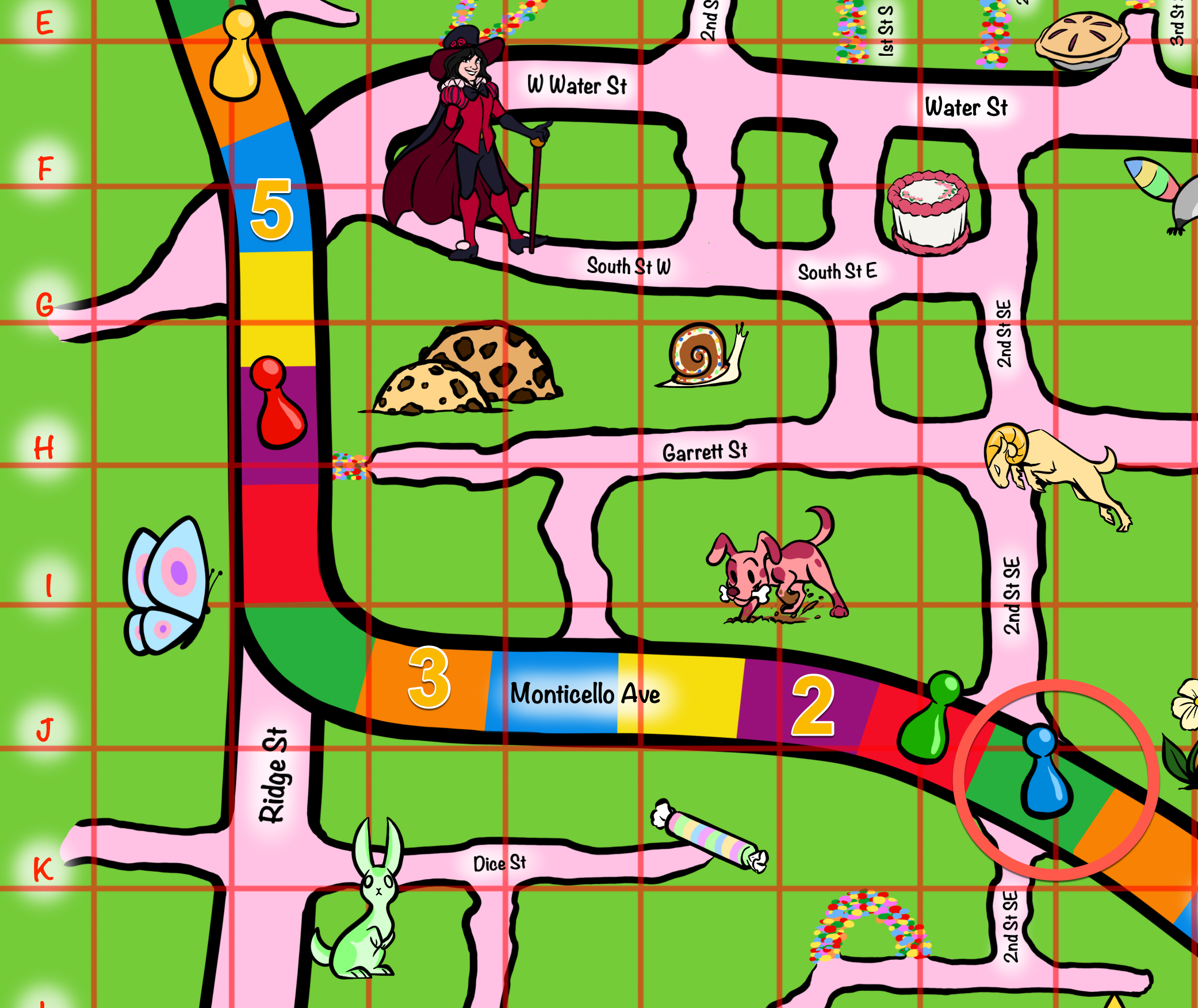 If hunters looked at the next three clues they collect: This is how you roll, 2 3 5, you are looking blue and then consulted their map likely saw that there was a blue playing piece on the game board. If teams pretended to roll a 2 then 3 then 5 as the blue piece, then they landed on: